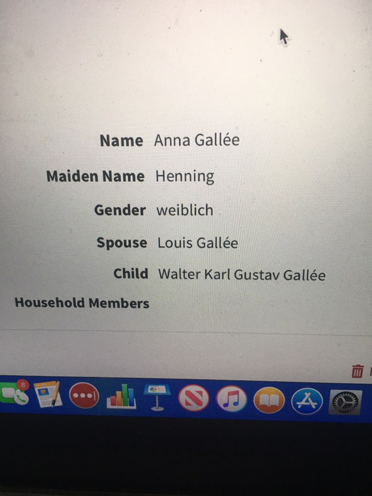 My great aunt ( who went by Anna ) … Anna Georgine Friederike Henning .. married Louis Gallee …