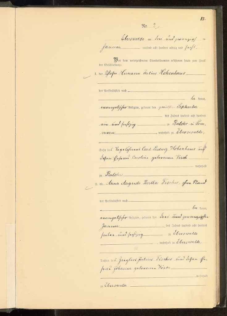Marriage Date 23 Jan 1886 Marriage Place Eberswalde, Barnim, Brandenburg, Deutschland Civil Registration Office Eberswalde