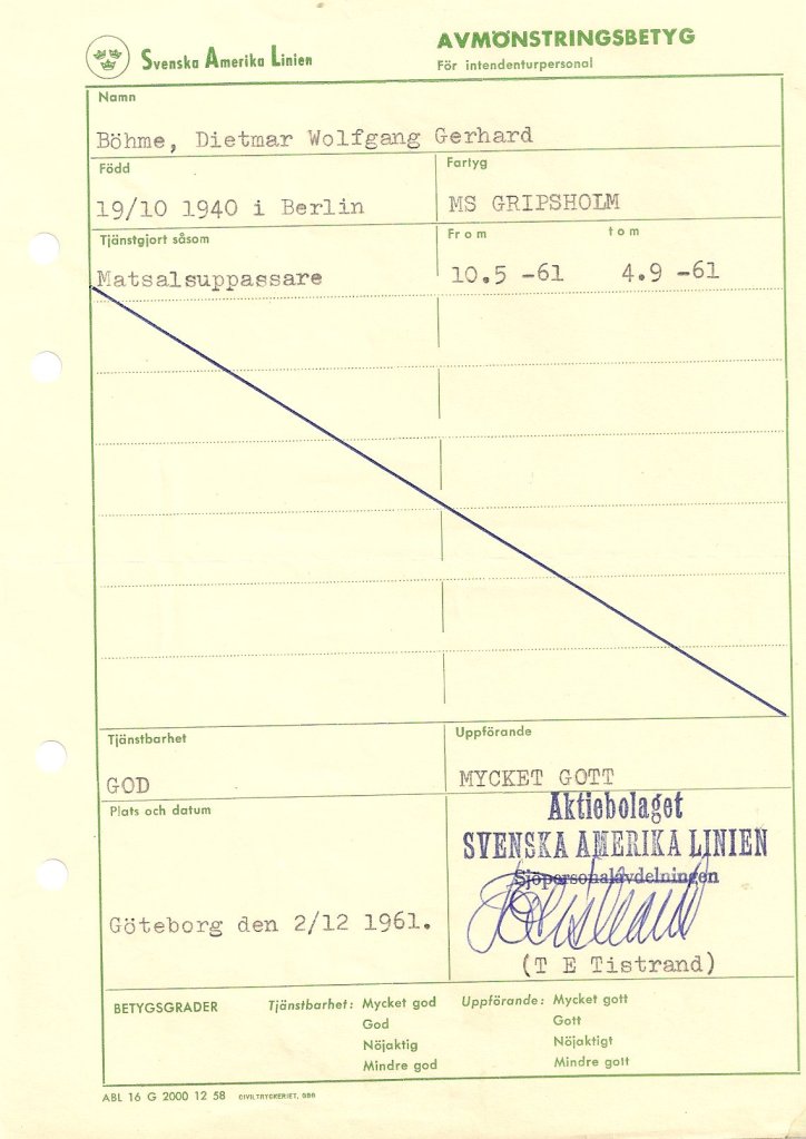 In 1961 he sailed on the SS America with his friend Hartmut. I dont know when this was, but I know that he sent this sometime…