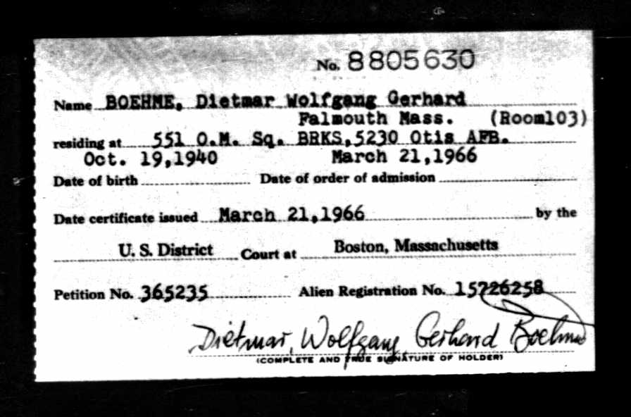 While he was studying in the service he passed with flying colors but was still trying to get his citizenship and Naturlization taken care of so they could not pass him until that happened… that is how he explained it to me. That is when he started his Career in the USAF, starting in Otis Air Force Base in the 551st O.M. Squardron. I am trying to find out more information about this and his Squadron if anyone has any information or knows of anyone who was in this please contact me!!