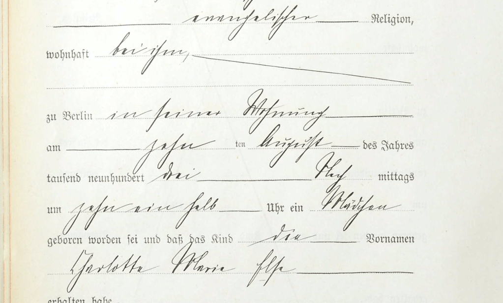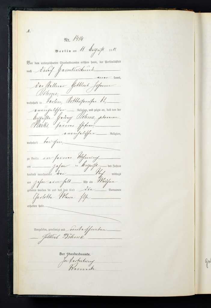 When Charlotte Marie Else Böhme was born on August 10, 1903, her father, Gottlieb, was 30, and her mother, Auguste, was 31. She had three brothers and five sisters.