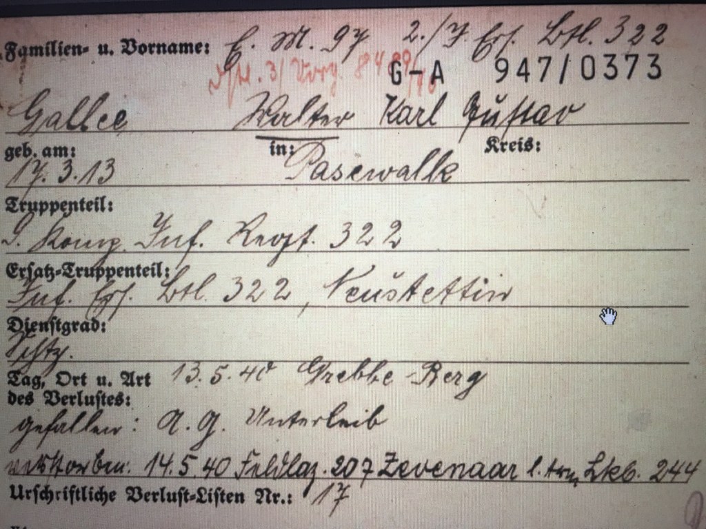 I was told that Onkel Walter died in the war. Thinking the photos above are him with his mother.. father.. and sister my Tante Hildi or ( Hildegard Galle-Zemmin ) I know the gravestone is his grave